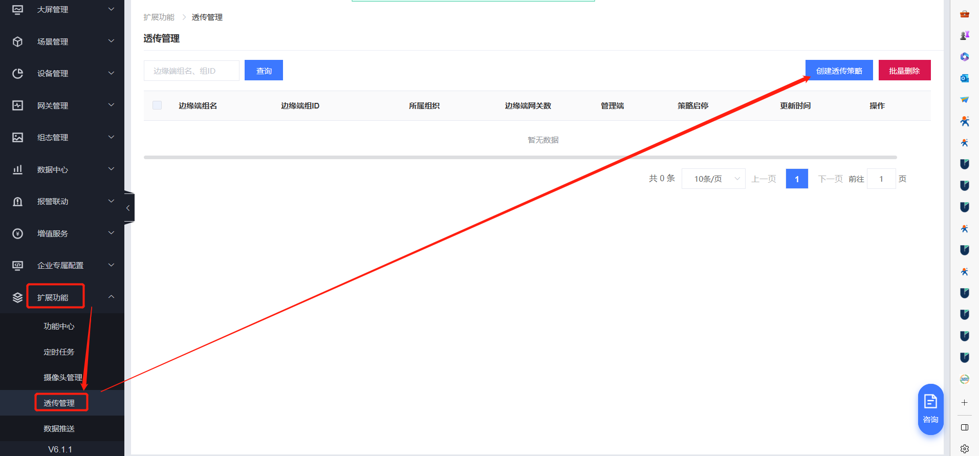 7、點(diǎn)擊“擴(kuò)展功能”---“透?jìng)鞴芾怼?--“創(chuàng)建透?jìng)鞑呗浴?/strong>