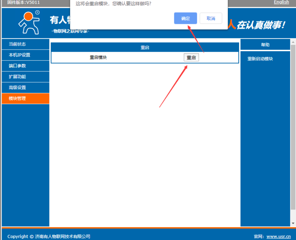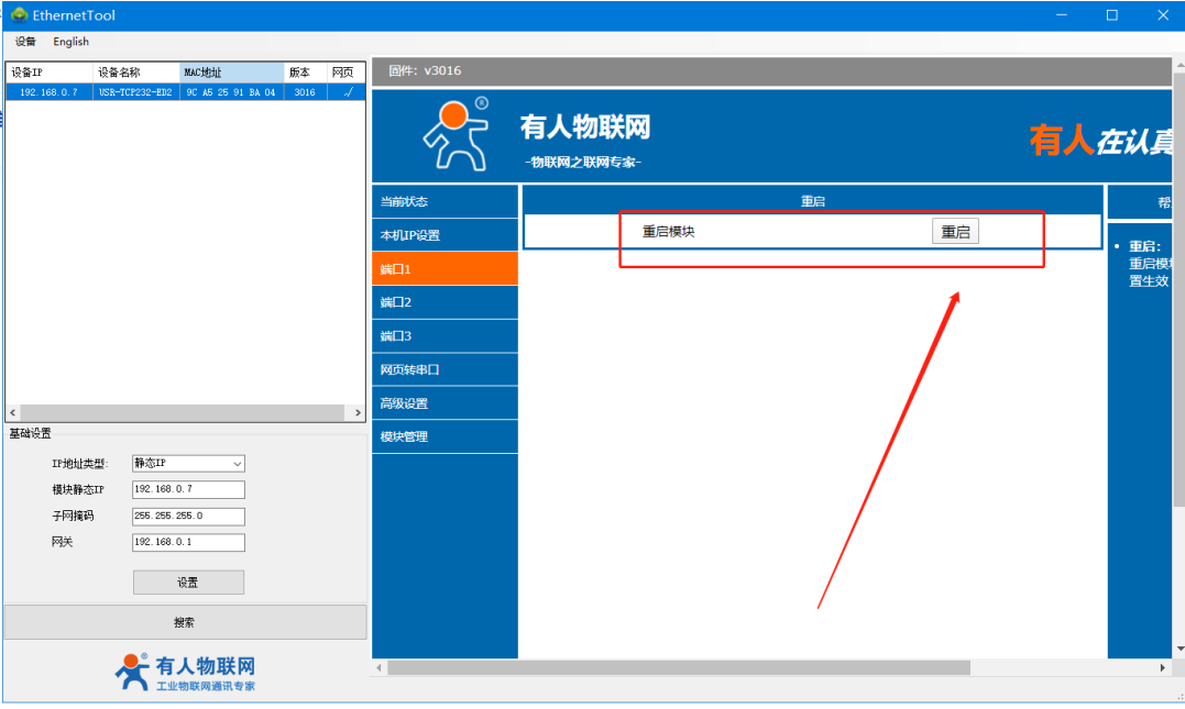 5 設(shè)置參數(shù)之后,點擊保存設(shè)置,重啟模塊