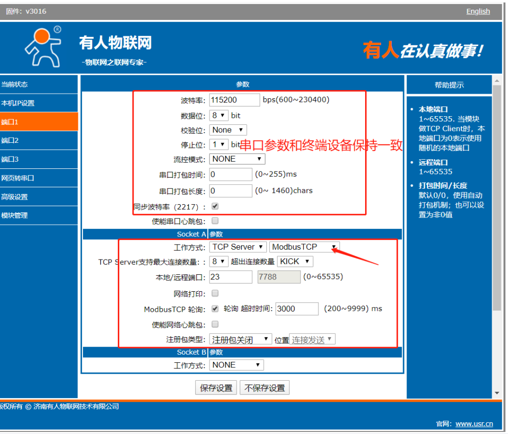 Socket:設(shè)置ED2的工作模式是TCPserver,開啟modbus TCP,