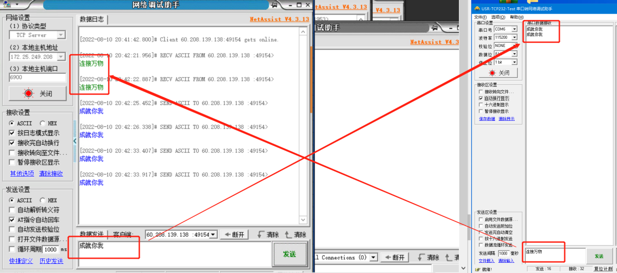 USR-TCP232-ED2 連接遠程服務(wù)器通信測試