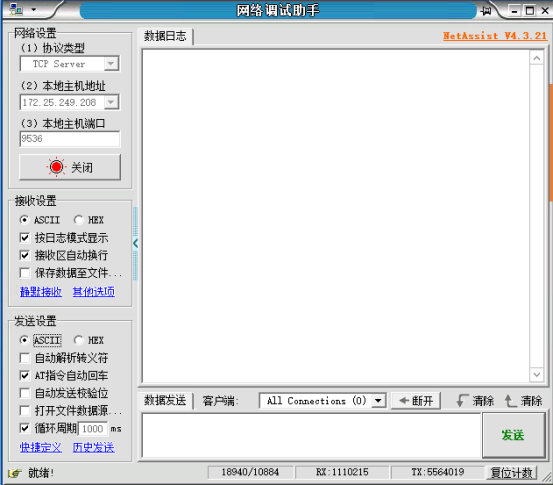 1、先在遠程服務(wù)器端打開一個網(wǎng)絡(luò)調(diào)試助手,設(shè)置成TCP server及本地端口號,開始監(jiān)聽。服務(wù)器ip需要是公網(wǎng)ip,局域網(wǎng)ip無法使用。