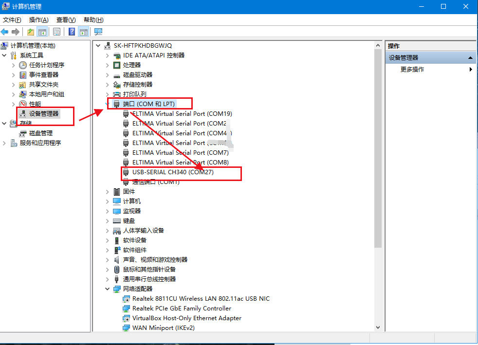 2、檢查USR-RS485串口線的COM口號,點(diǎn)擊電腦計算機(jī),右擊鼠標(biāo),點(diǎn)擊設(shè)備管理器,查看端口,確認(rèn)USB-RS485串口線的COM口號,有人測試電腦是COM27。