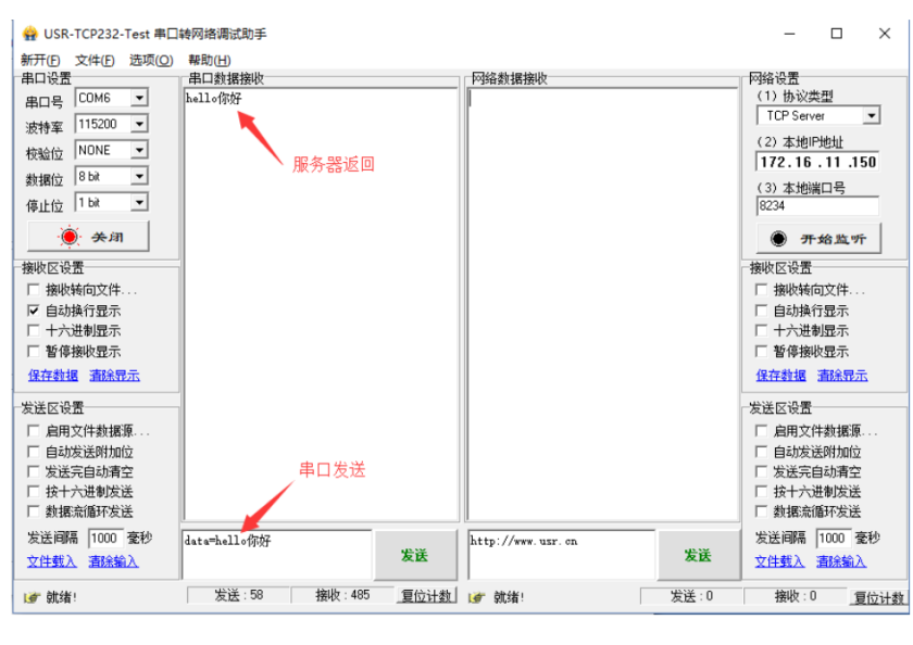 發(fā)送data=hello你好,返回?cái)?shù)據(jù):hello你好