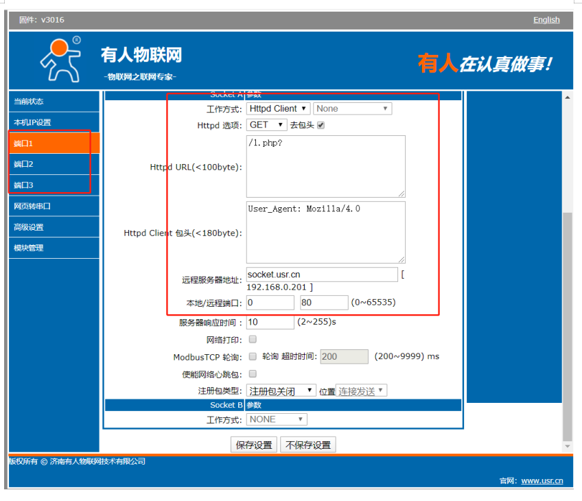 1、設(shè)置參數(shù):打開設(shè)置軟件,模塊設(shè)置為Httpd Client模式