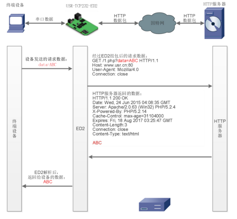 1. 通過網(wǎng)頁將 ED2 設(shè)置為 Httpd Client 模式,并設(shè)置相應(yīng)的目標(biāo)端口號和目標(biāo) IP/域名