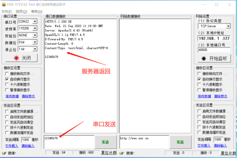 USR-TCP232-E2(M4) HTTPD POST模式測試案例