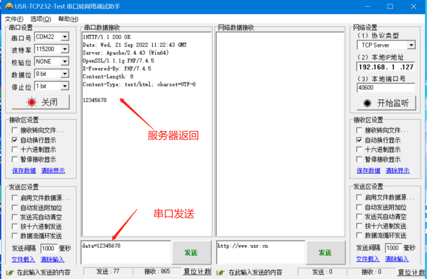 USR-TCP232-E2(M4) HTTPD GET模式測(cè)試案例