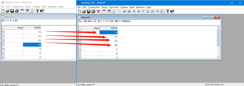 改變每個(gè)MODBUS SLAVE軟件的數(shù)據(jù),對(duì)應(yīng)的MODBUS POLL軟件就可以采集到正確的數(shù)據(jù)。
