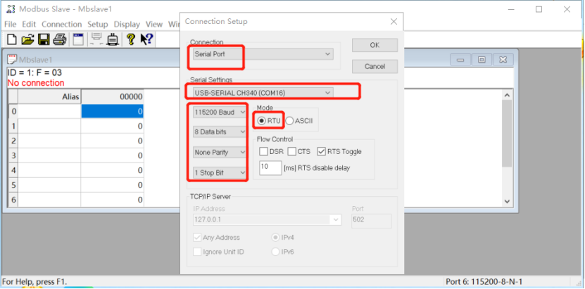 模擬測(cè)試用MODBUS SLAVE軟件做串口設(shè)備,用MODBUS POLL軟件做網(wǎng)絡(luò)端。