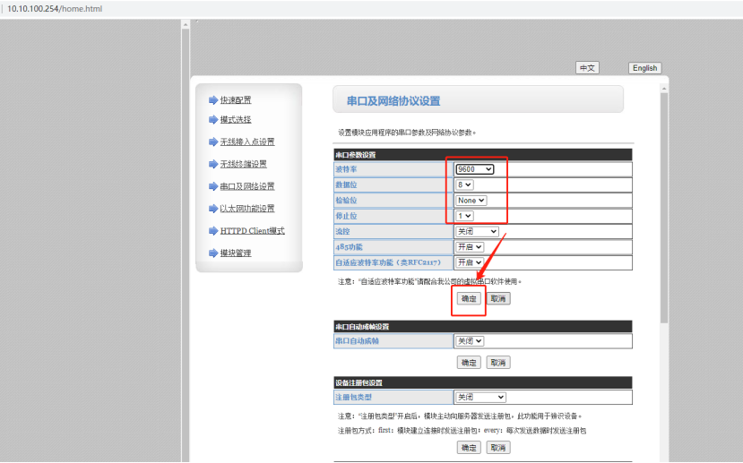 3)波特率改成和要接的串口設(shè)備一致(測試改完9600),點(diǎn)擊確定