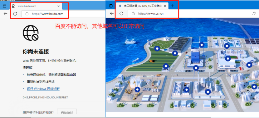 <2>連接路由器的設(shè)備將除設(shè)置的域名可以訪問(wèn)外,其余域名都無(wú)法訪問(wèn)設(shè)置。注:若選擇白名單,而未添加規(guī)則,默認(rèn)白名單為空,即所有域名都不能夠訪問(wèn)