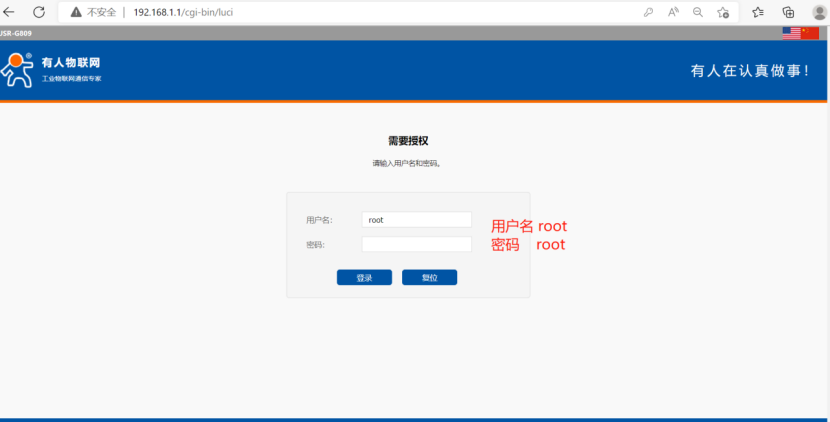 2、在瀏覽器上輸入192.168.1.1,用戶名和密碼都是root,登錄G809的內(nèi)置網(wǎng)頁(yè)。