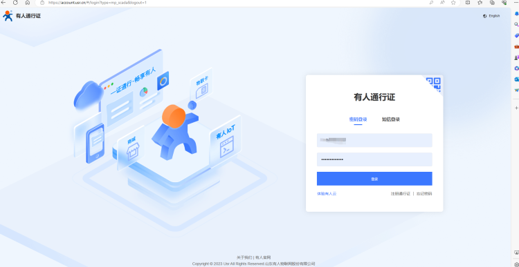 登陸有人云:https://account.usr.cn/#/login?type=mp_scada&logout=1,注冊賬號并登陸。