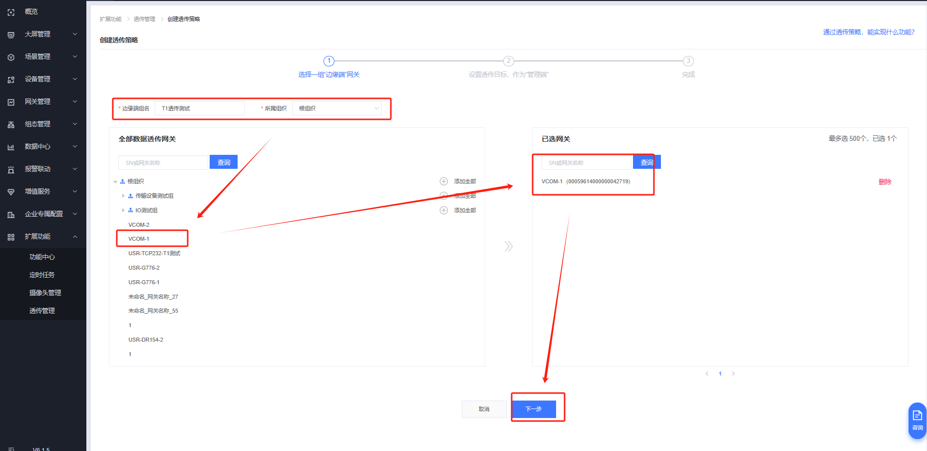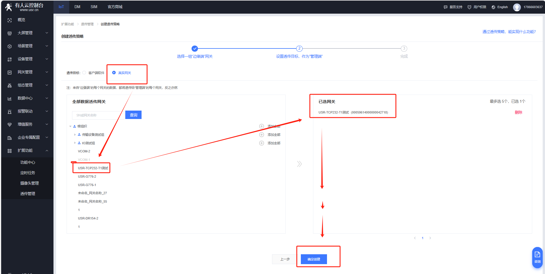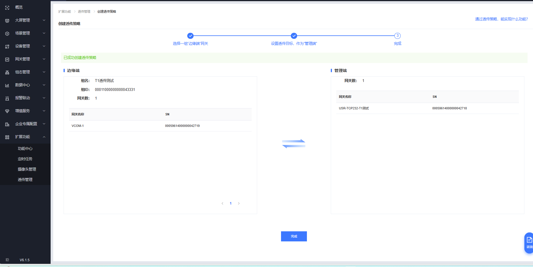 擴(kuò)展功能---透傳管理---創(chuàng)建透傳策略