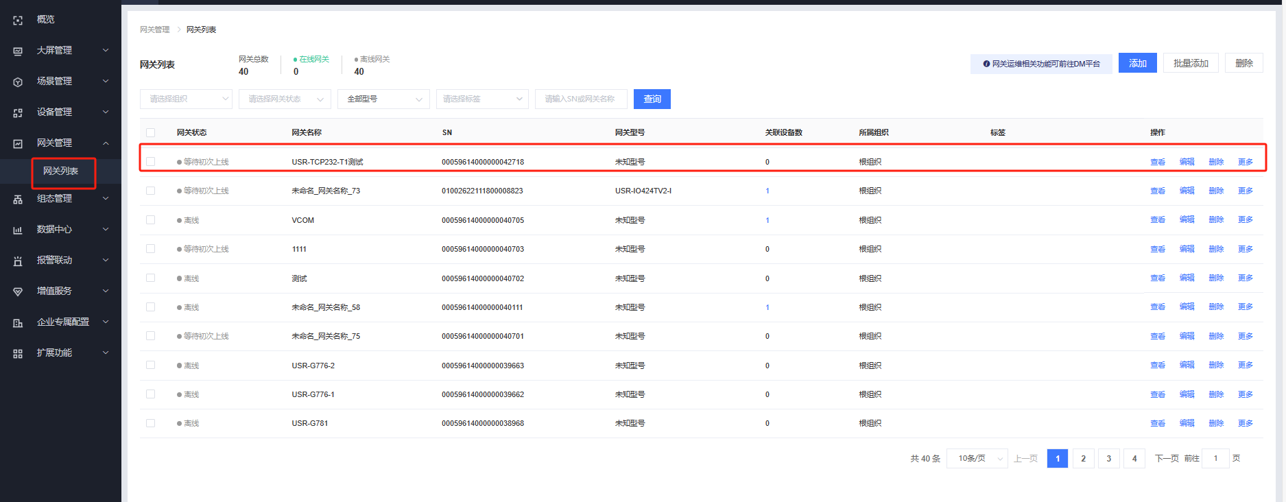 2.添加網(wǎng)關(guān):網(wǎng)關(guān)管理--網(wǎng)關(guān)列表--添加