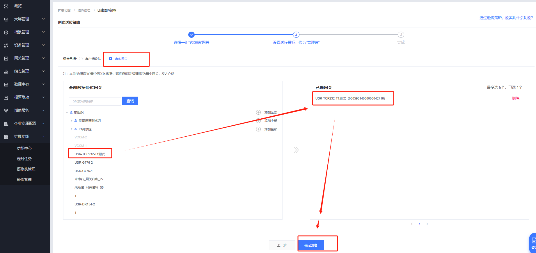 擴(kuò)展功能---透傳管理---創(chuàng)建透傳策略