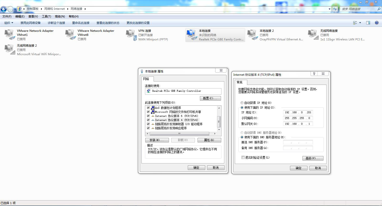 1.電腦本地連接,IP設(shè)置和T1 IP同網(wǎng)段,T1默認(rèn)IP是192.168.0.7,網(wǎng)關(guān)192.168.1.1,電腦本地連接IPv4設(shè)置靜態(tài)IP,192.168.0.201,子網(wǎng)掩碼255.255.255.0,網(wǎng)關(guān)192.168.1.1