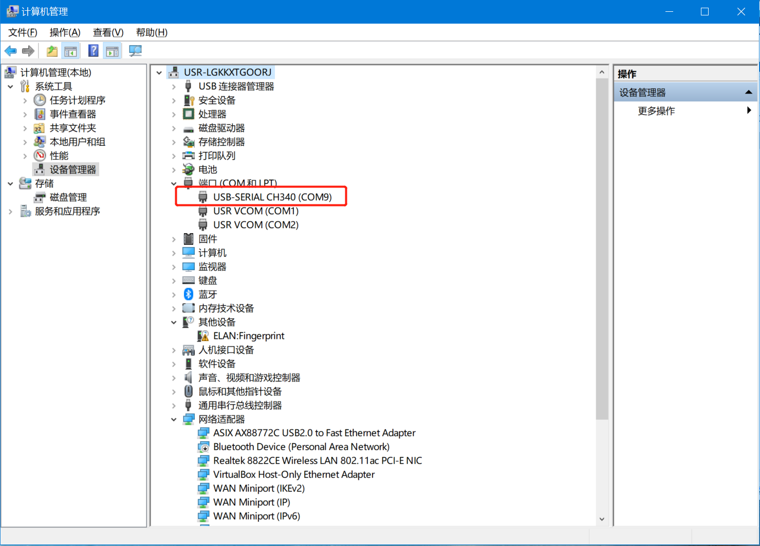 注意:以win10為例,查看串口號(hào)可在“我的電腦”->“管理”->“設(shè)備管理器”->“端口”中查詢。