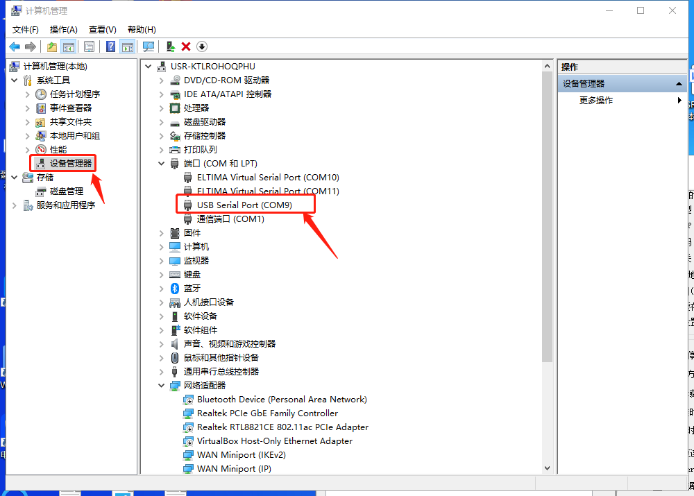 4.在設(shè)備管理器中查看端口信息,確定USR-TCP232-EVB評(píng)估板串口使用的串口號(hào),如下圖所示電腦端口號(hào)為COM9。