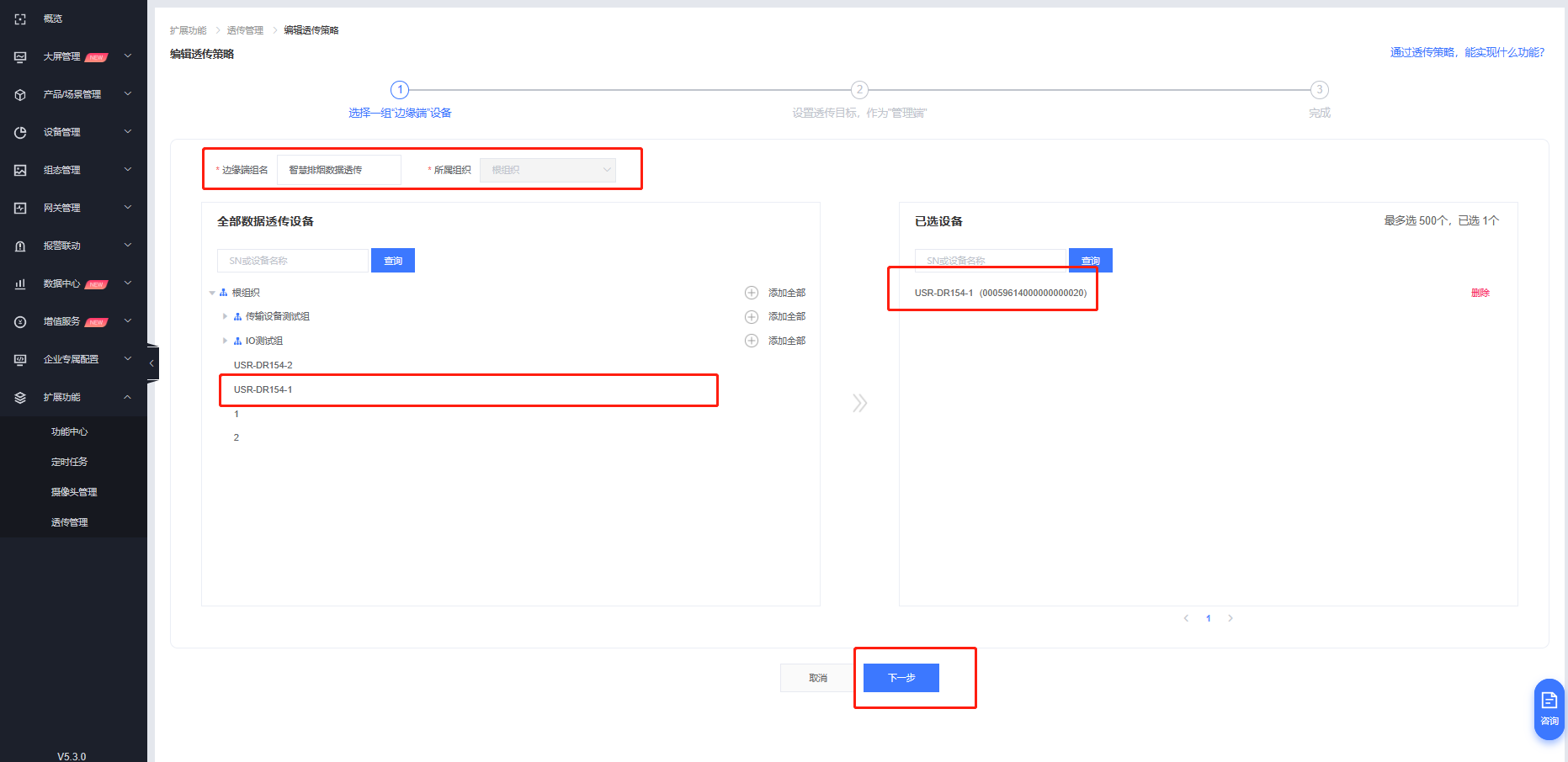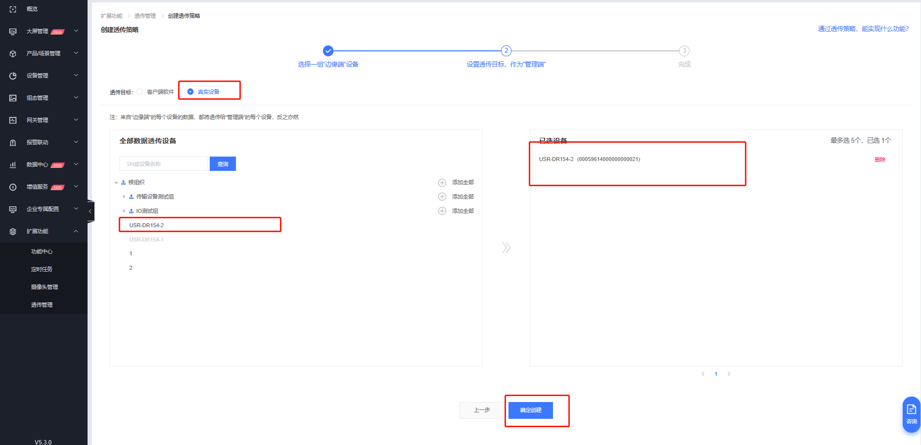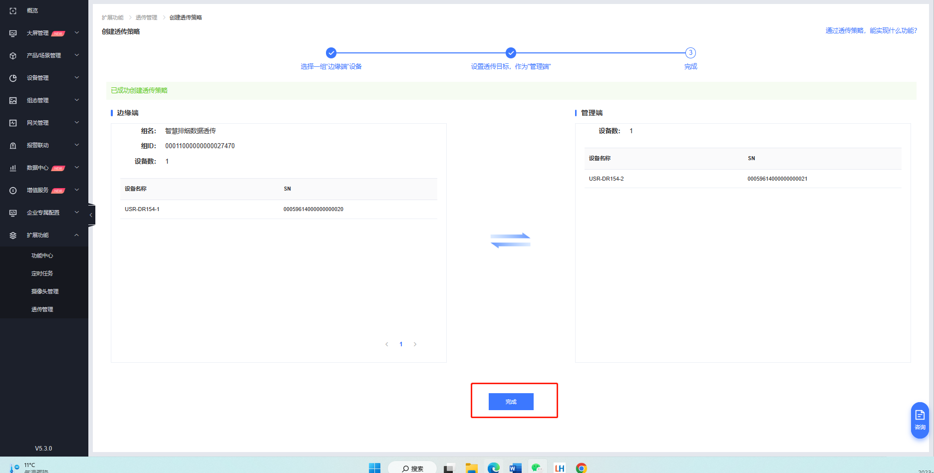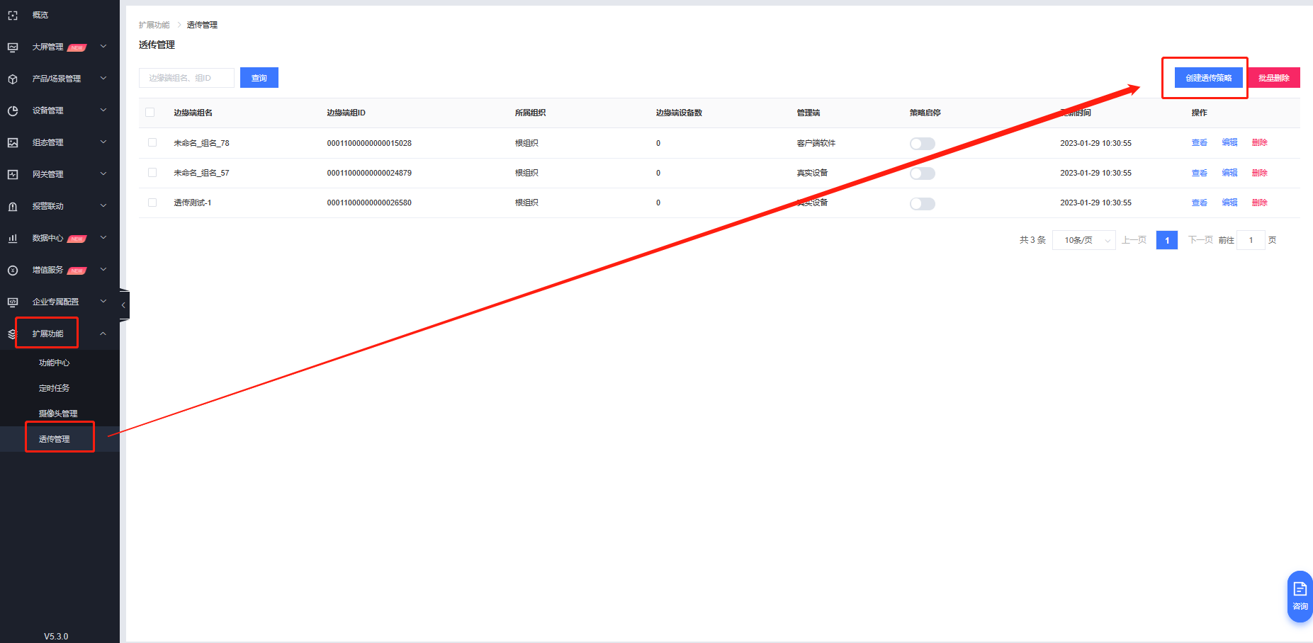 3. 創(chuàng)建透傳組:有人云擴展功能-透傳管理-創(chuàng)建透傳策略