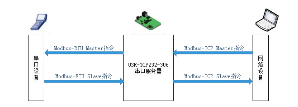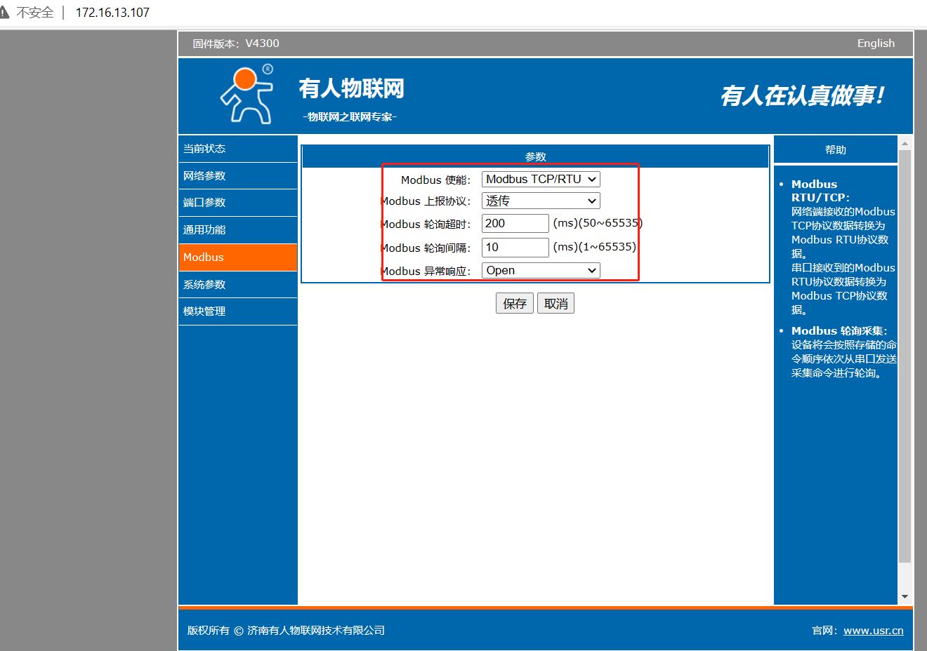 說明:Modbus 網關功能,僅在 USR-TCP232-30X 系列(國產芯片)產品具備。進口芯片無此功能,請注意區(qū)分。