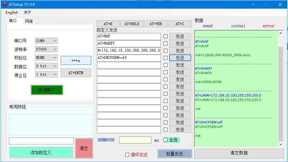 3、發(fā)送AT指令設(shè)置參數(shù)
