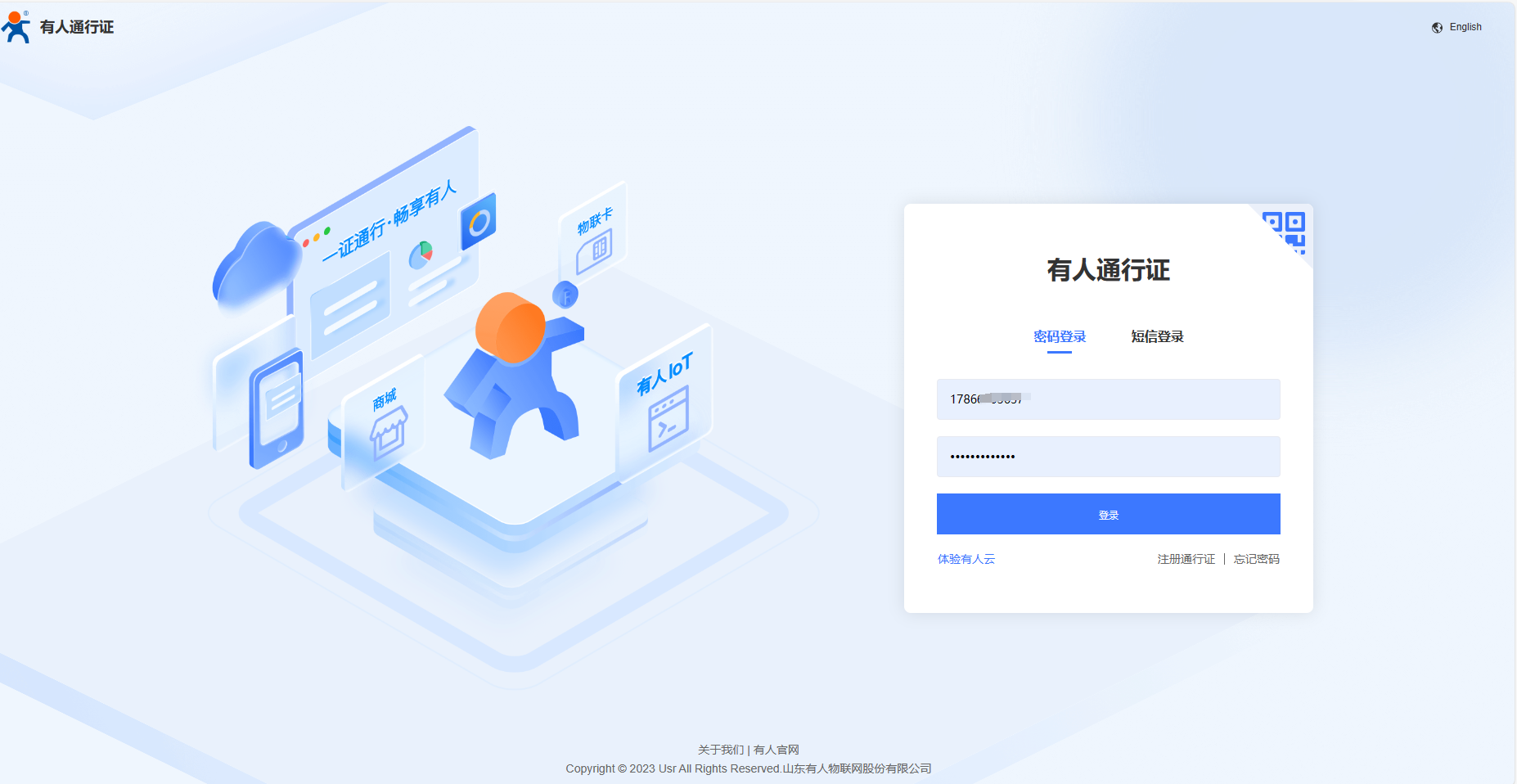 1.登錄有人云平臺:https://account.usr.cn/#/login?type=mp_scada