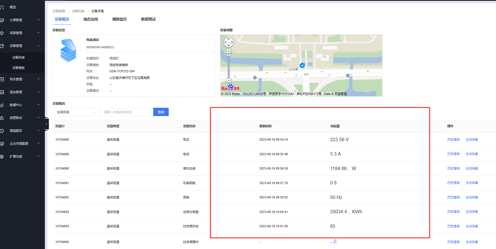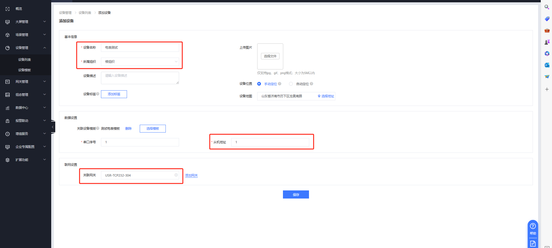設(shè)備管理--設(shè)備列表--添加設(shè)備,填入設(shè)備名稱和組織,綁定剛才做的電表模板,然后綁定網(wǎng)關(guān)304保存即可,綁定模板時,對于304來說串口序號選擇1即可,設(shè)備地址填電表的實際地址,由單機測試可知此電表地址是1(電表出廠默認(rèn)是1,地址可修改)
