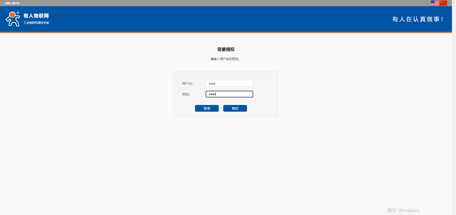 G816默認(rèn)啟用AP功能,設(shè)備插上wifi天線,接入電源適配器,電腦連接816的wifi,輸入192.168.1.1打開內(nèi)置網(wǎng)頁,用戶名密碼都為root,點(diǎn)擊登錄。