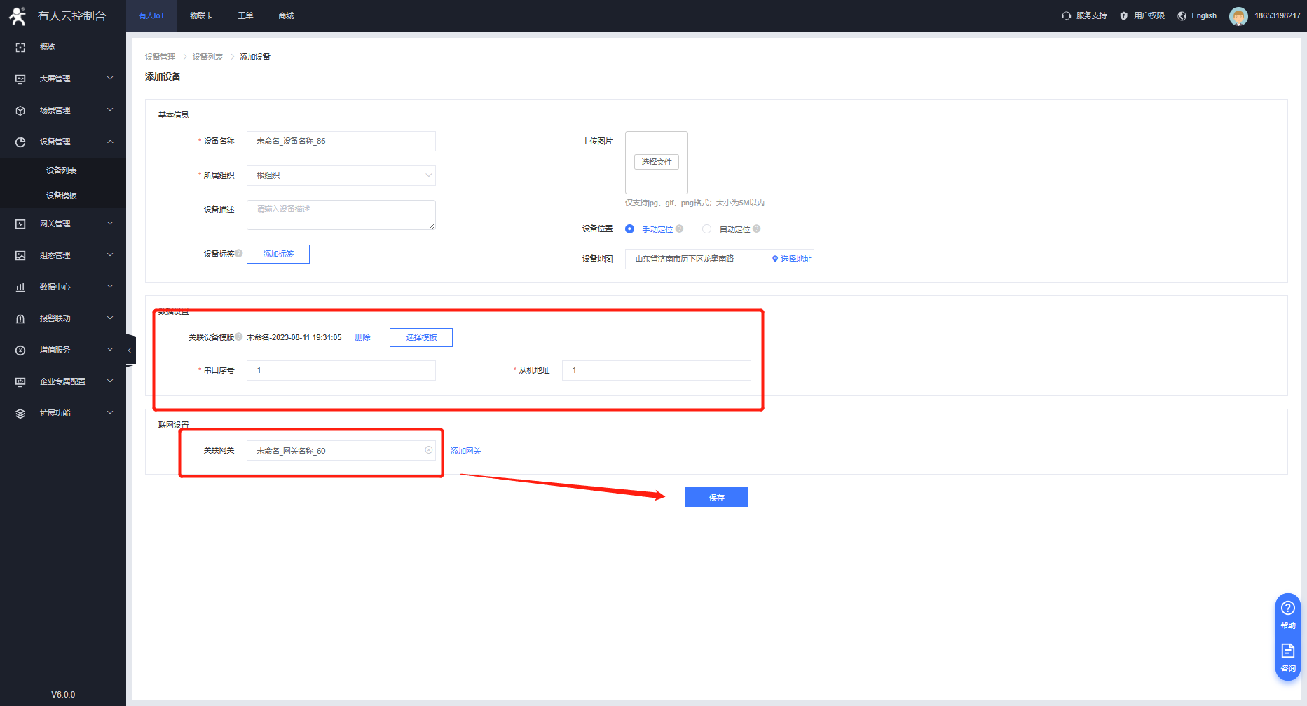 透傳云的域名為143848.cnsh.iot-tcp.com,透傳云的端口為15000,設(shè)置完點擊保存