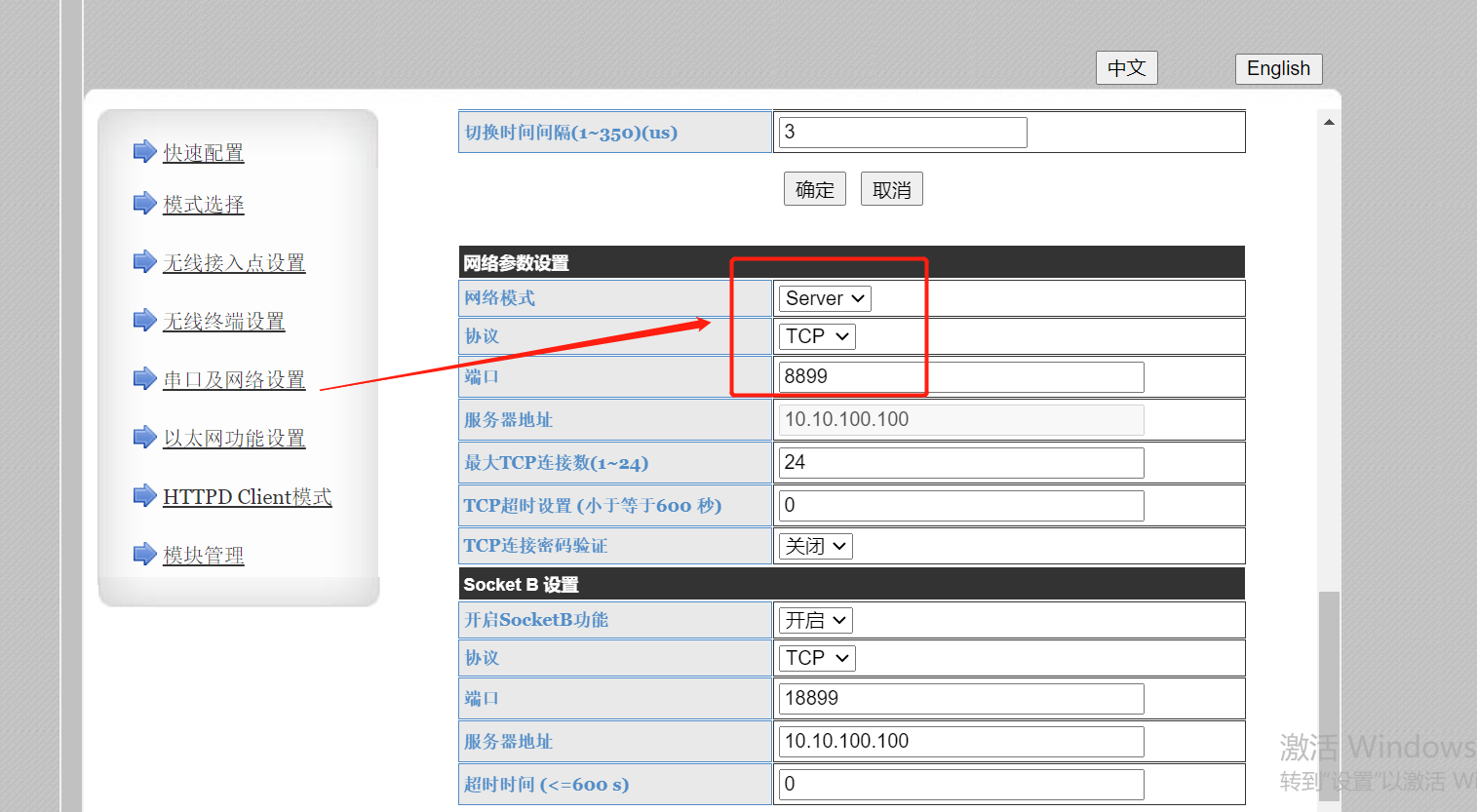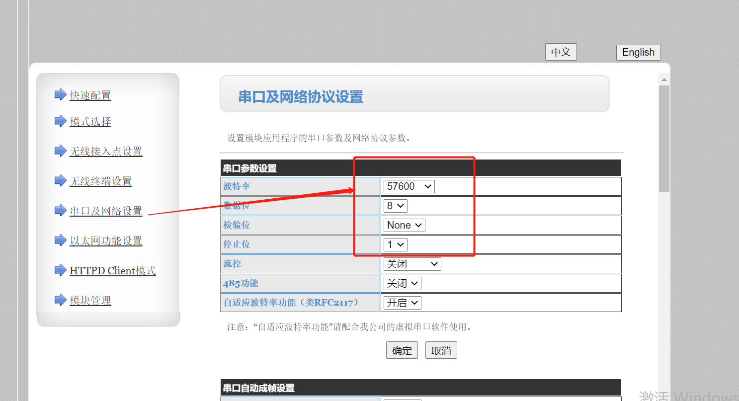 3.設(shè)置w610為tcp sever,本地端口號8899,串口參數(shù)如下