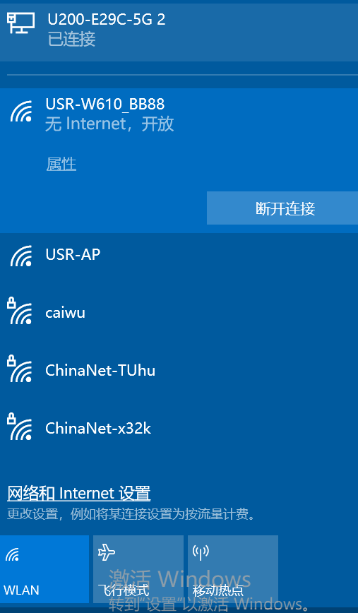 1.w610接上WiFi天線,電腦連接上wifi,232串口轉(zhuǎn)USB接到電腦。并關(guān)閉電腦防火墻、多余網(wǎng)卡和殺毒軟件。模塊出廠默認(rèn)是AP模式,電腦連接W610的wifi信號,當(dāng)有設(shè)備連到W610的wifi后,Link指示燈亮起。SSID后面跟了4個字符,是MAC地址的后4位,MAC地址可以在設(shè)備背面的標(biāo)簽上看到。