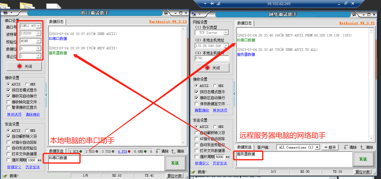 遠(yuǎn)程服務(wù)器打開網(wǎng)絡(luò)助手,選擇好工作方式和端口。