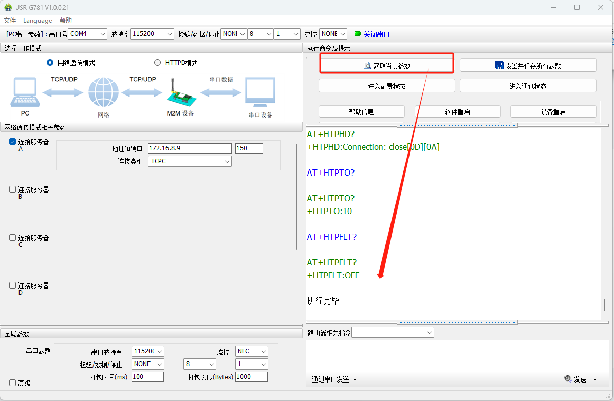 可以從全局參數(shù)中修改串口的波特率、校驗位等參數(shù),然后點擊設(shè)置并保存參數(shù)