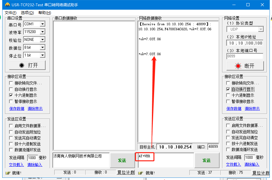 4. 在收到 ip,mac后,單播回復(fù)一個(gè)+ok 后可以使用, 查詢的AT指令必須是大寫加回車換行發(fā)送