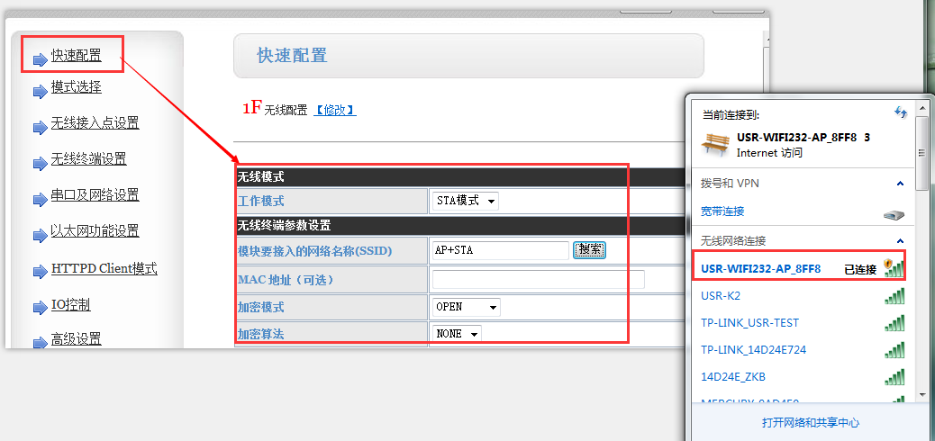 連接上做AP+STA模塊的SSID,打開瀏覽器輸入10.10.100.254,賬戶密碼為admin。