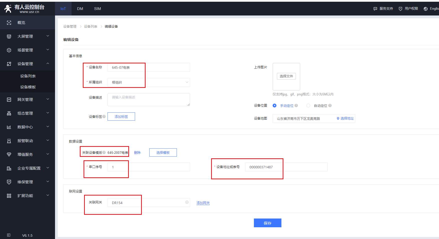 關(guān)聯(lián)設(shè)備模板:選擇已有模板,關(guān)聯(lián)剛剛添加的645-2007電表