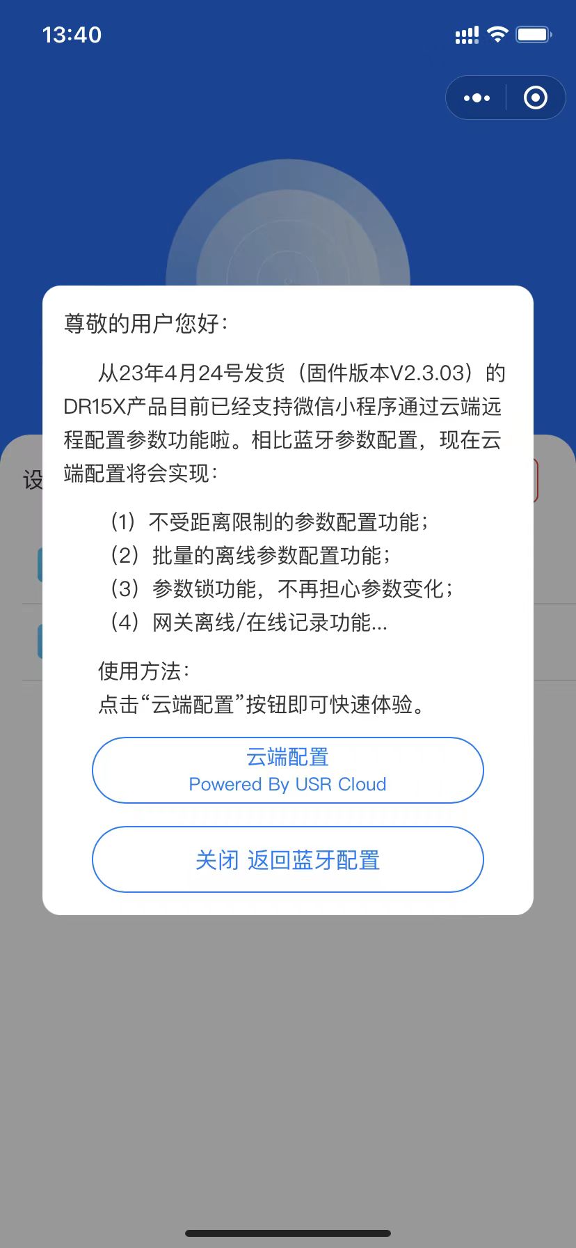 DR154外殼正面貼有設(shè)備專屬二維碼,手機(jī)微信掃描該二維碼即可跳轉(zhuǎn)有人云手機(jī)端微信小程序登錄添加網(wǎng)關(guān)設(shè)備。有人云手機(jī)端微信小程序介紹可以參考說(shuō)明:http://cloud.usr.cn/document/334.htm