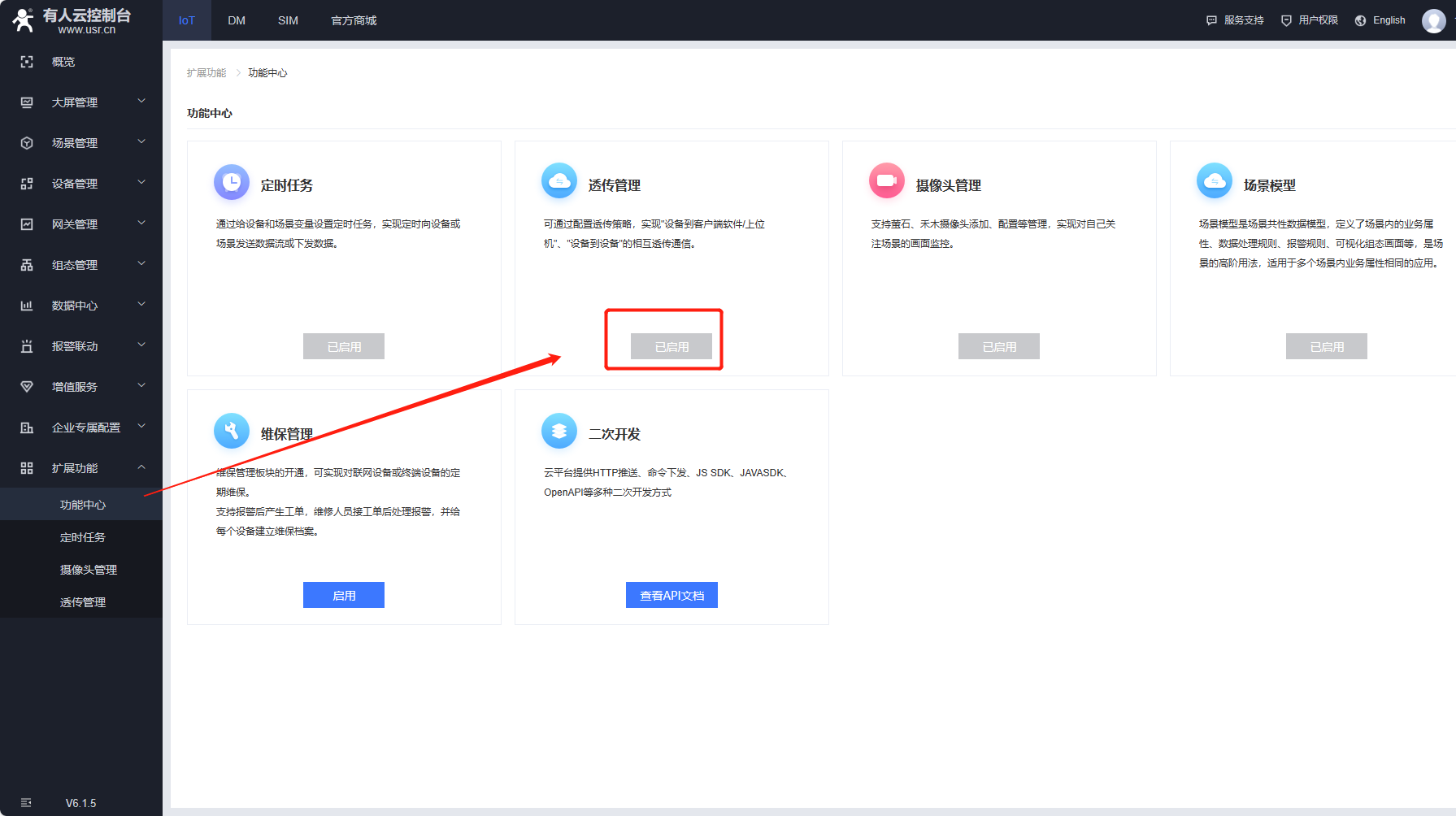 開啟有人云透傳功能