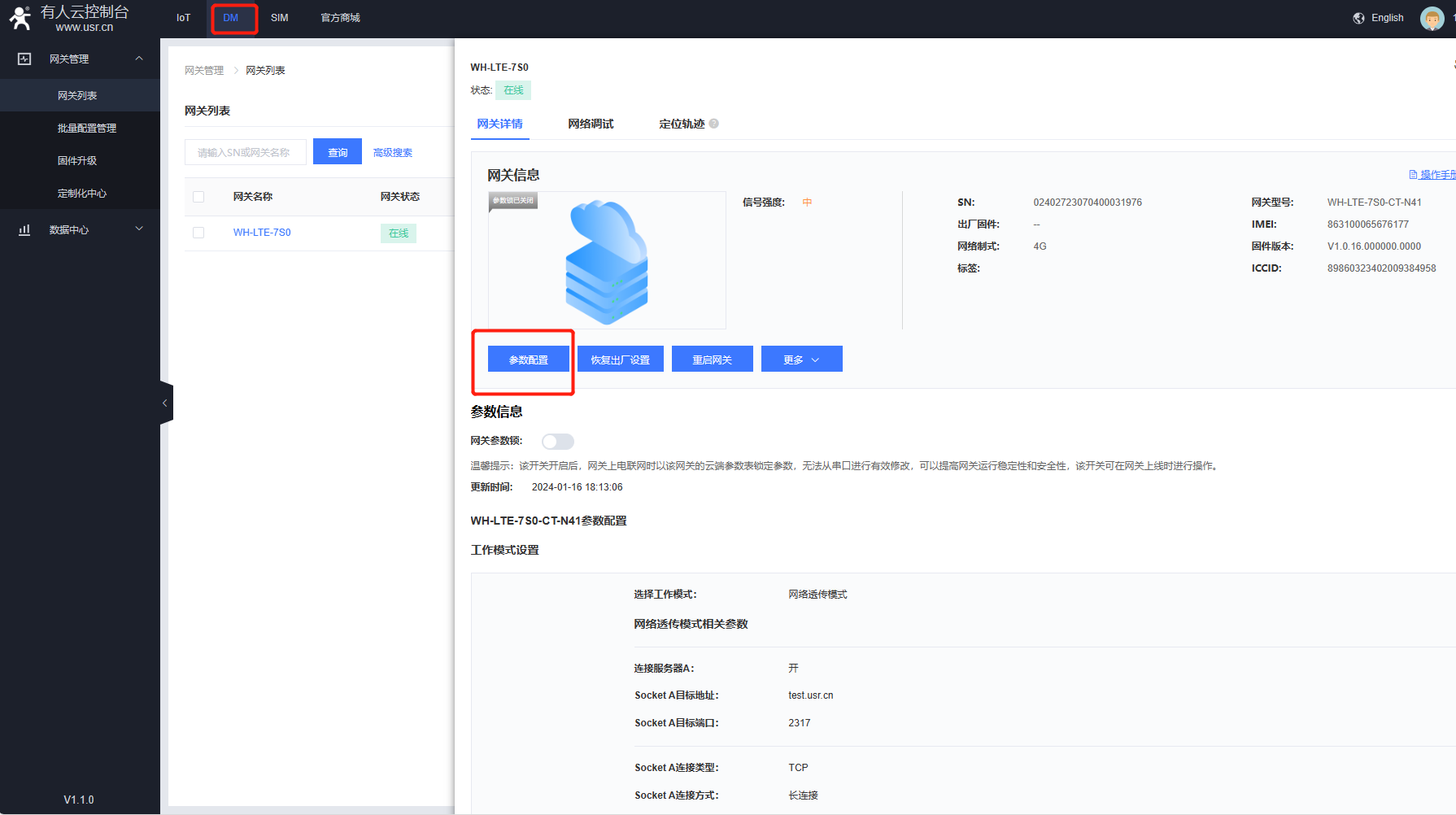 可以在DM平臺更改模塊的串口參數(shù)