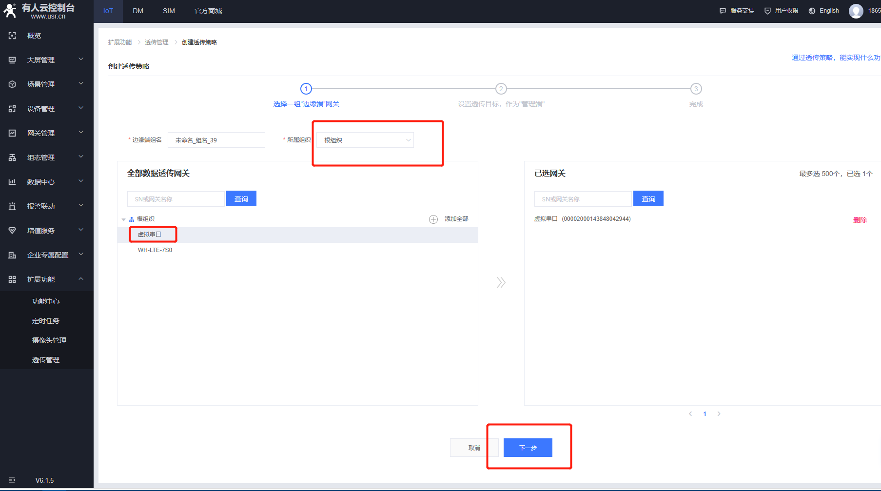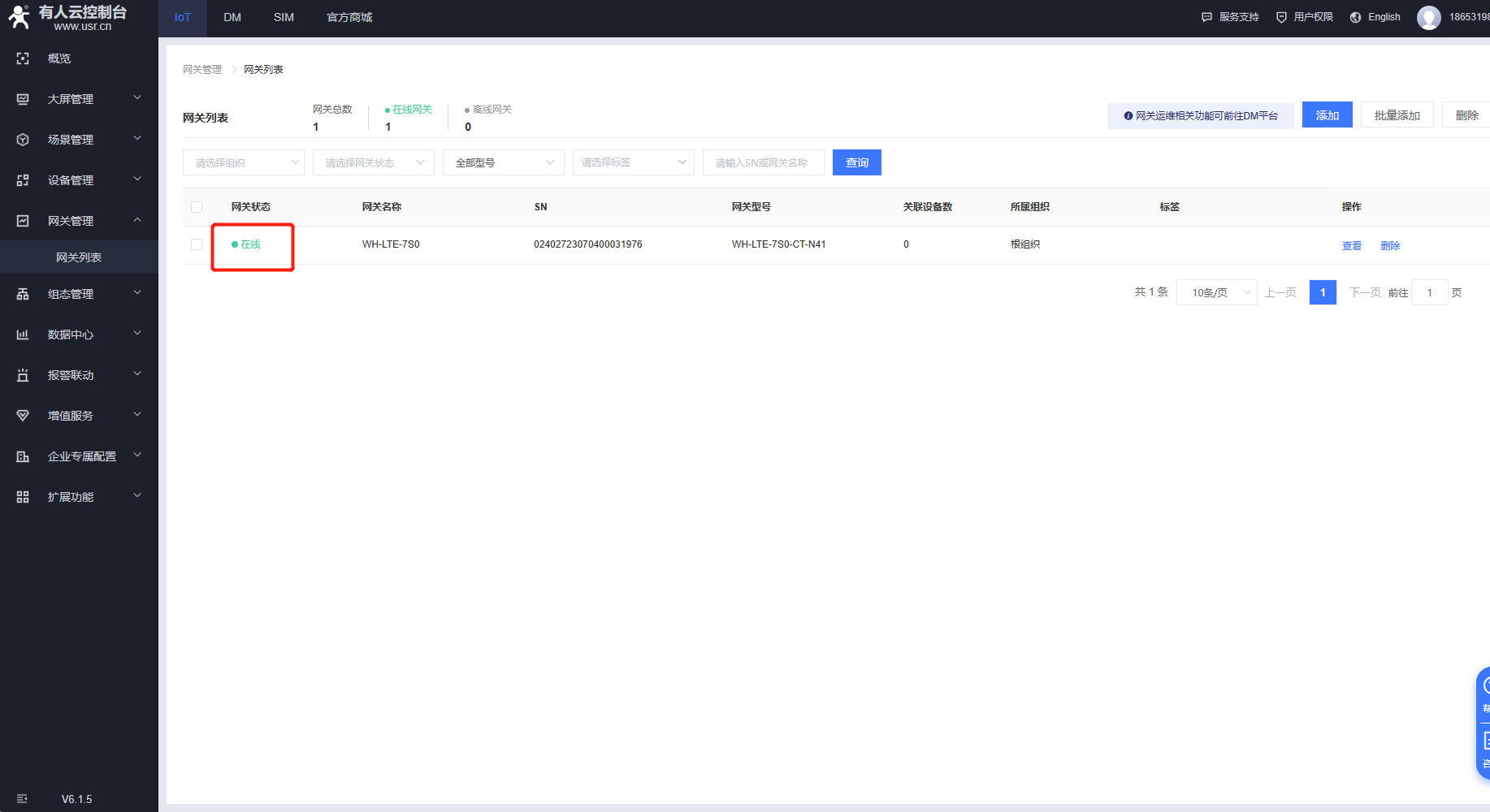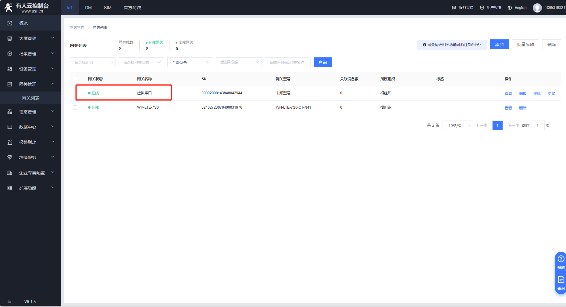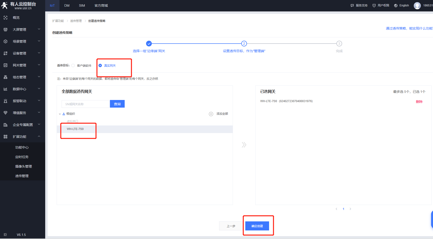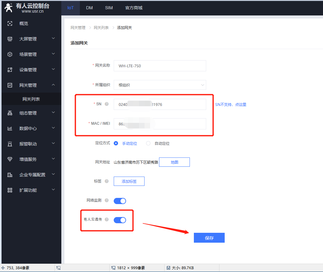 在網(wǎng)關(guān)列表界面添加網(wǎng)關(guān),選擇sn不支持,打開有人云透傳