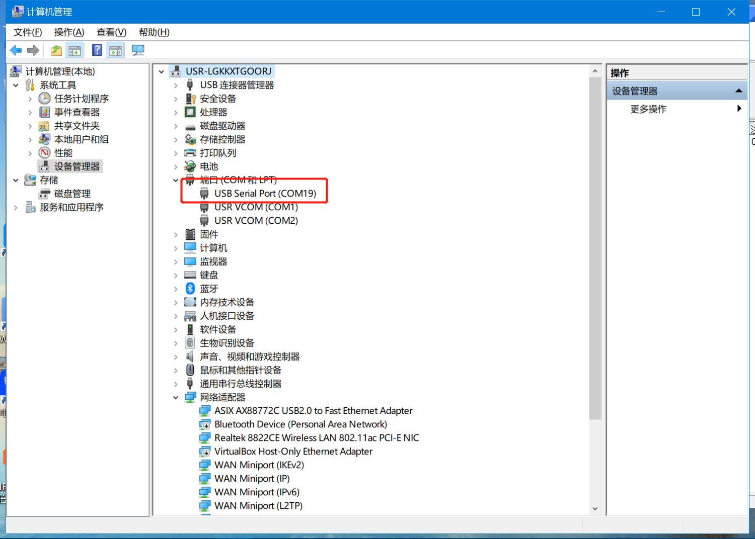 設(shè)備管理器看下232轉(zhuǎn)usb是com19