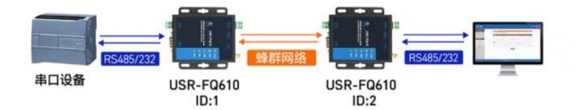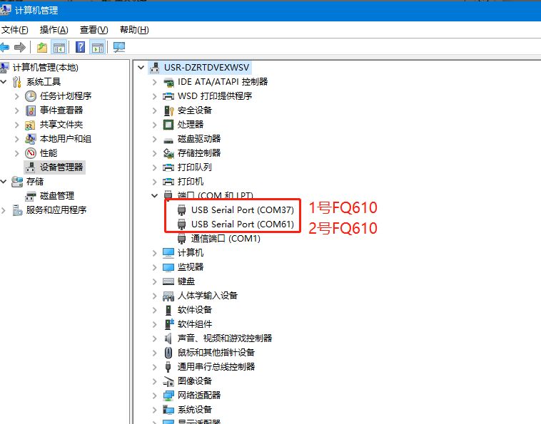 為方便測(cè)試,兩臺(tái)USR-FQ610串口均接電腦進(jìn)行測(cè)試。