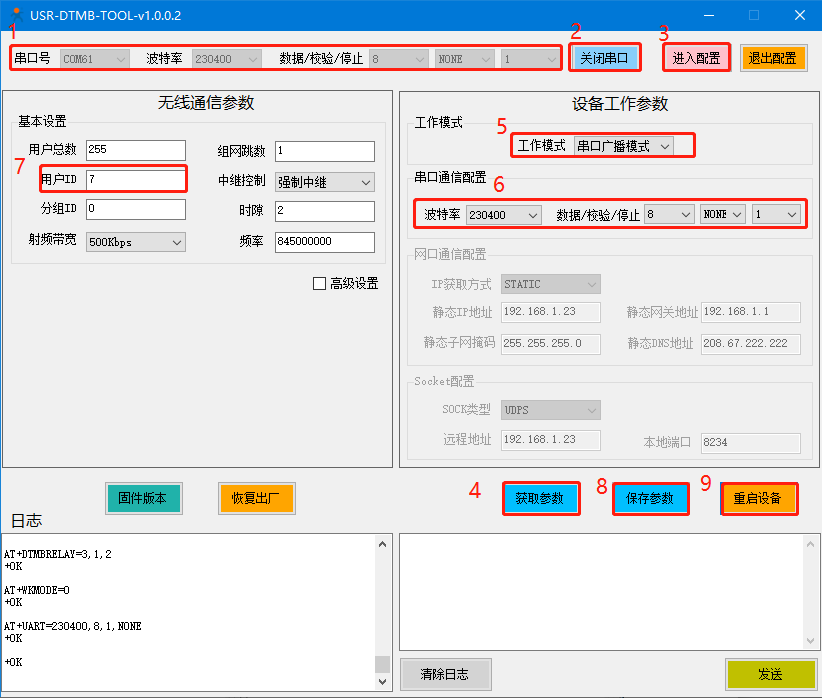 電腦打開USR-DTMB-TOOL設(shè)置軟件