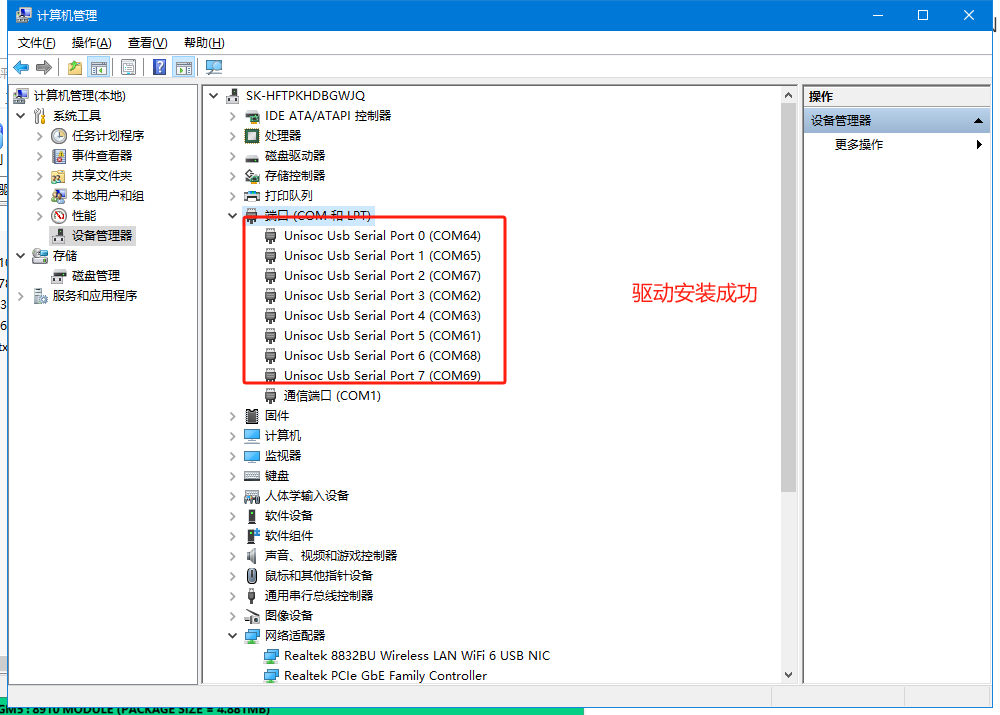 2.安裝完驅(qū)動,用數(shù)據(jù)線接780s的升級口,usb端接電腦,可以看到電腦識別到很多的串口,說明驅(qū)動安裝成功