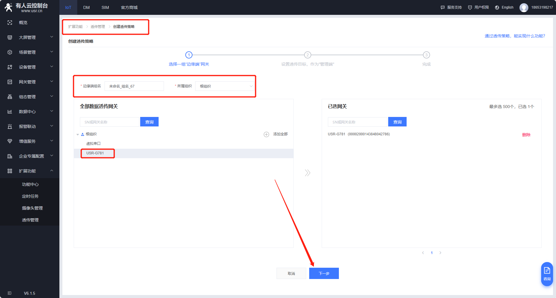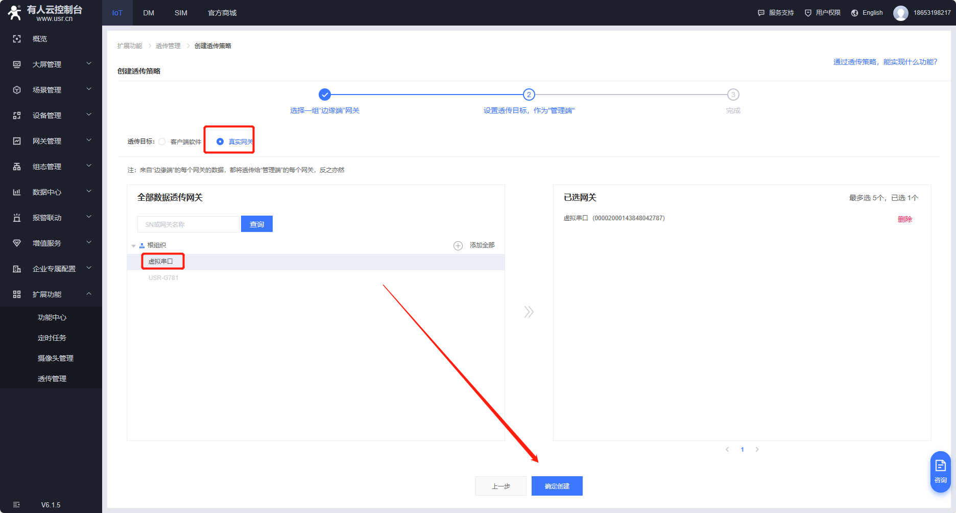 擴展功能--透傳管理--創(chuàng)建透傳策略