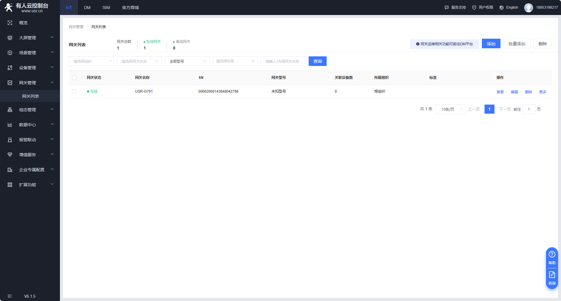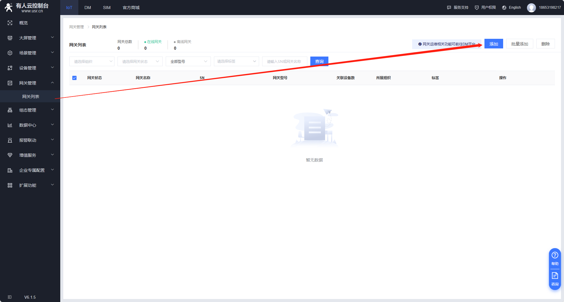 1、云平臺添加設備,在網(wǎng)關管理---網(wǎng)關列表--添加網(wǎng)關,點擊SN不支持,系統(tǒng)自動生成,不需要自己設置,打開有人云透傳開關,通訊密碼可以自定義8位密碼.(建議使用系統(tǒng)自動生成的通訊密碼)