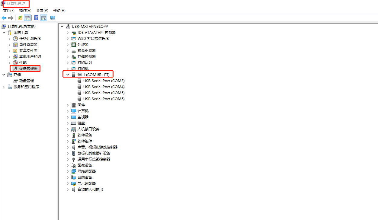 電腦鼠標點擊計算機管理,右擊,點開設(shè)備管理器,點擊端口,查看接USR-DR152的USB-RS232串口線COM口號,COM3。
