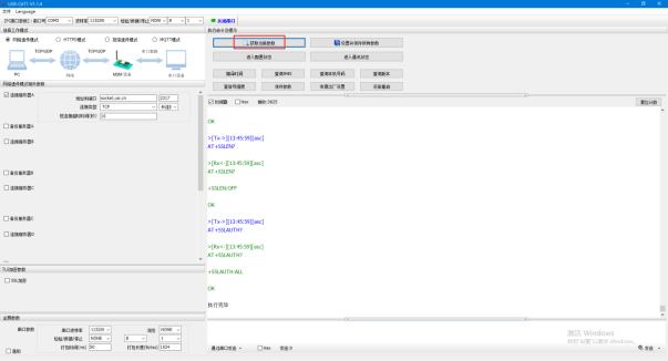 使用串口 AT 指令首先需要確認固件支持該功能,并且工作在透傳模式下,可以按照如下操作進行配置: