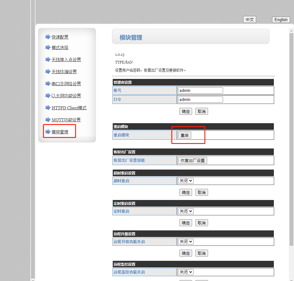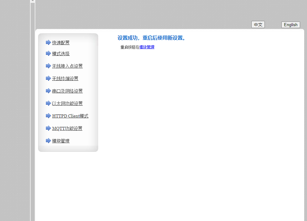 6、網(wǎng)頁設(shè)置完參數(shù),重啟模塊